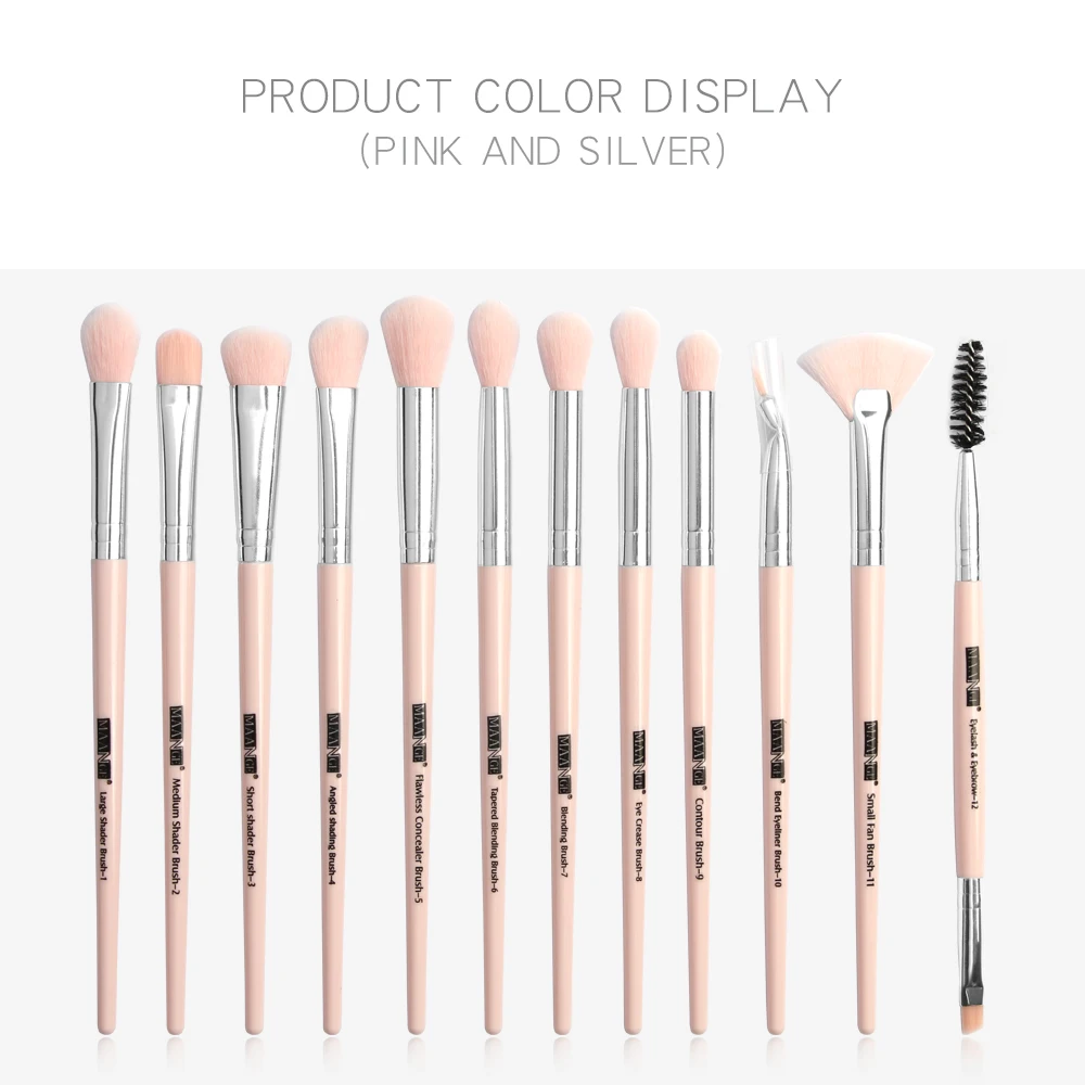 MAANGE 12pcs Pro Custom Luxury High Quality Professional Silicone Makeup Tools Personal Beauty Pink Black Vegan Makeup Brush Set | ||||||||