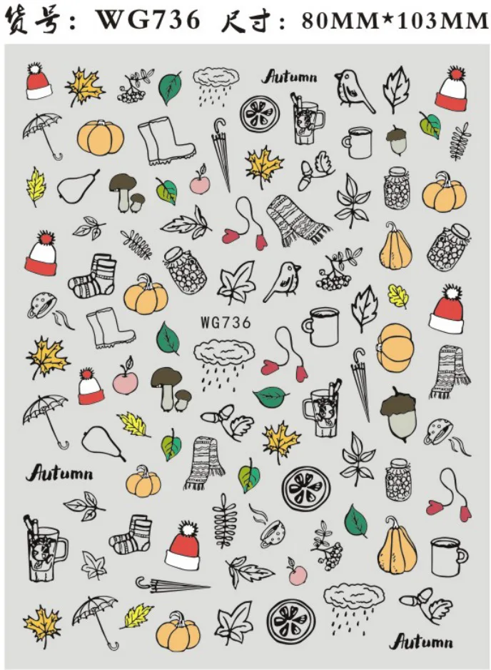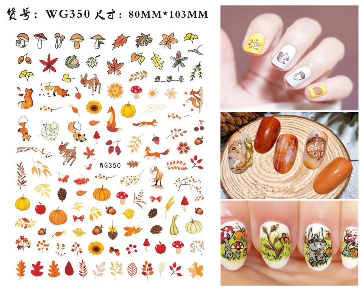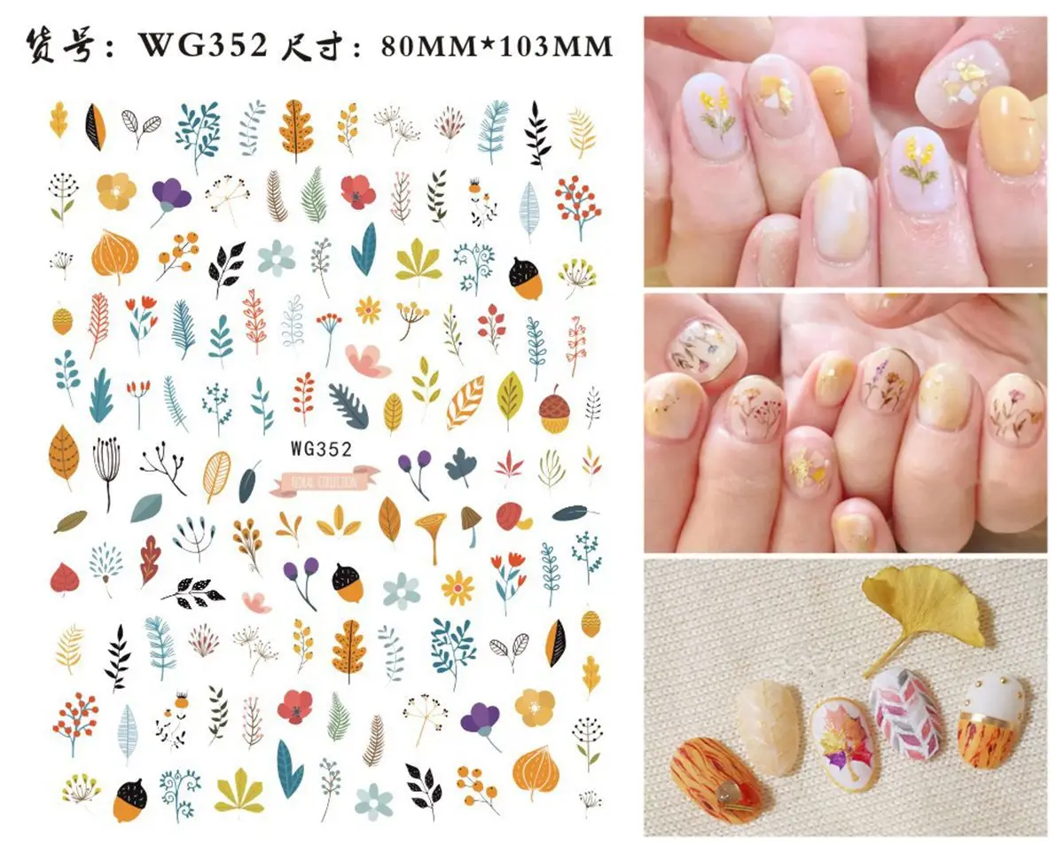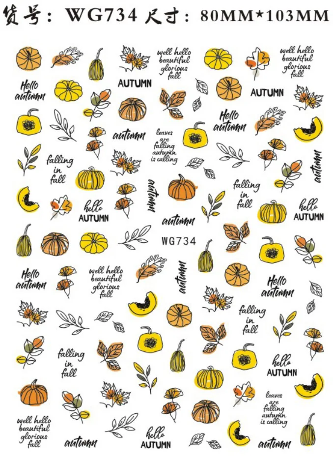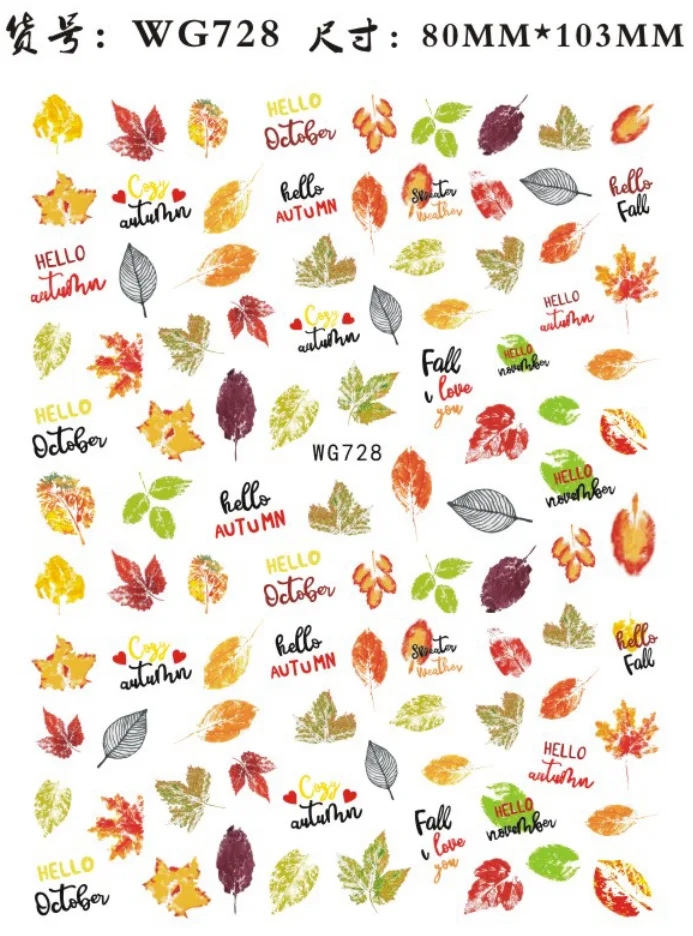 Maple Leaves 3d Nail Stickers Fall Leaf Flowers Line Sliders For Nails Self Adhesive Stickers Autumn Thanks Giving Day Stickers