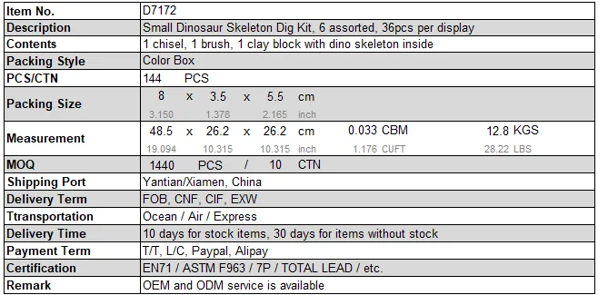 MINI Dino DIG Out Dinosaur Bones Toy! Wholesale Children Toys Dinosaur Skeleton Fossil Excavation Dig Out Kit