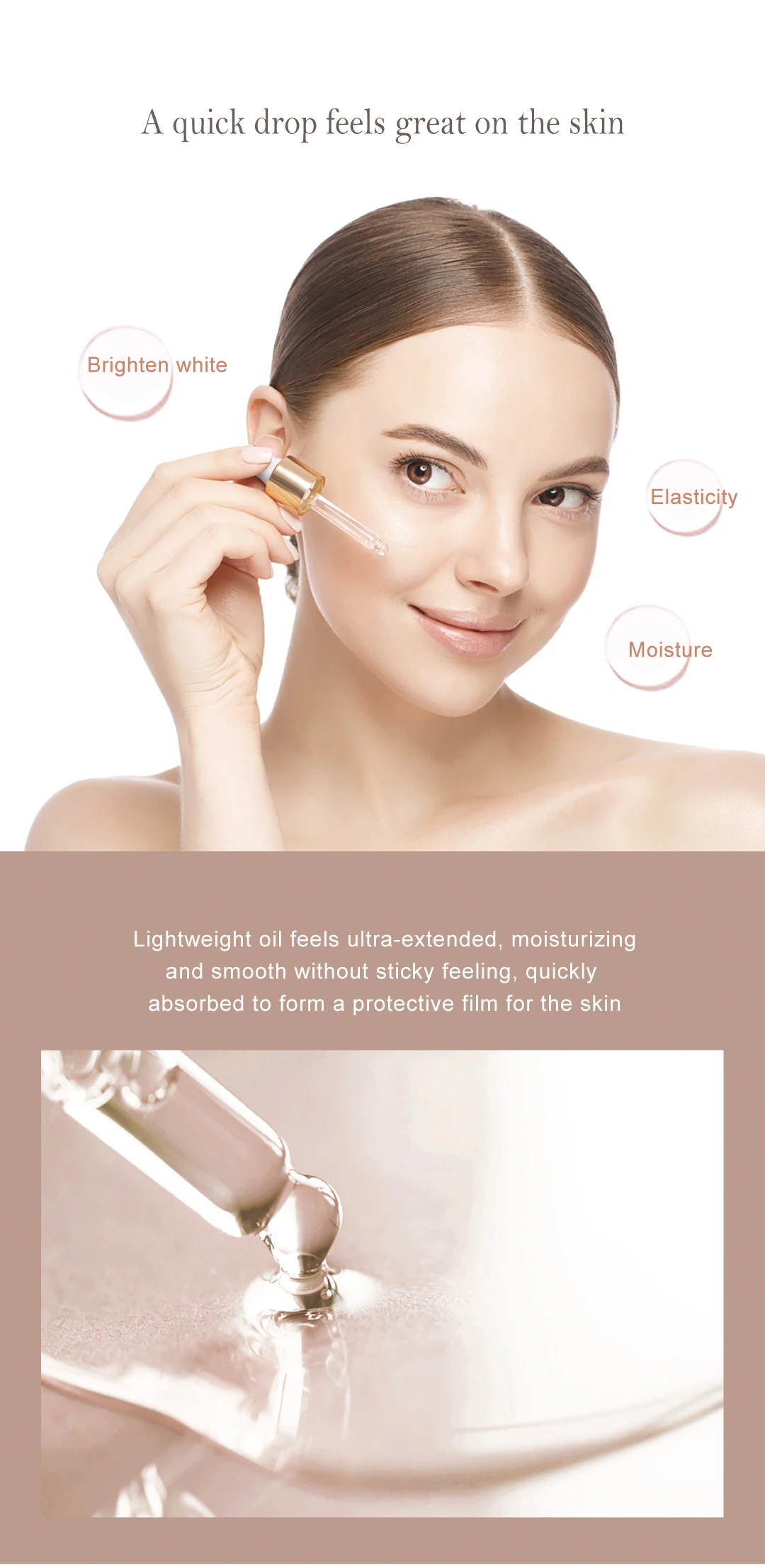 Lightweight oil feels ultra-extended, moisturizing, and smooth without sticky feeling, quickly