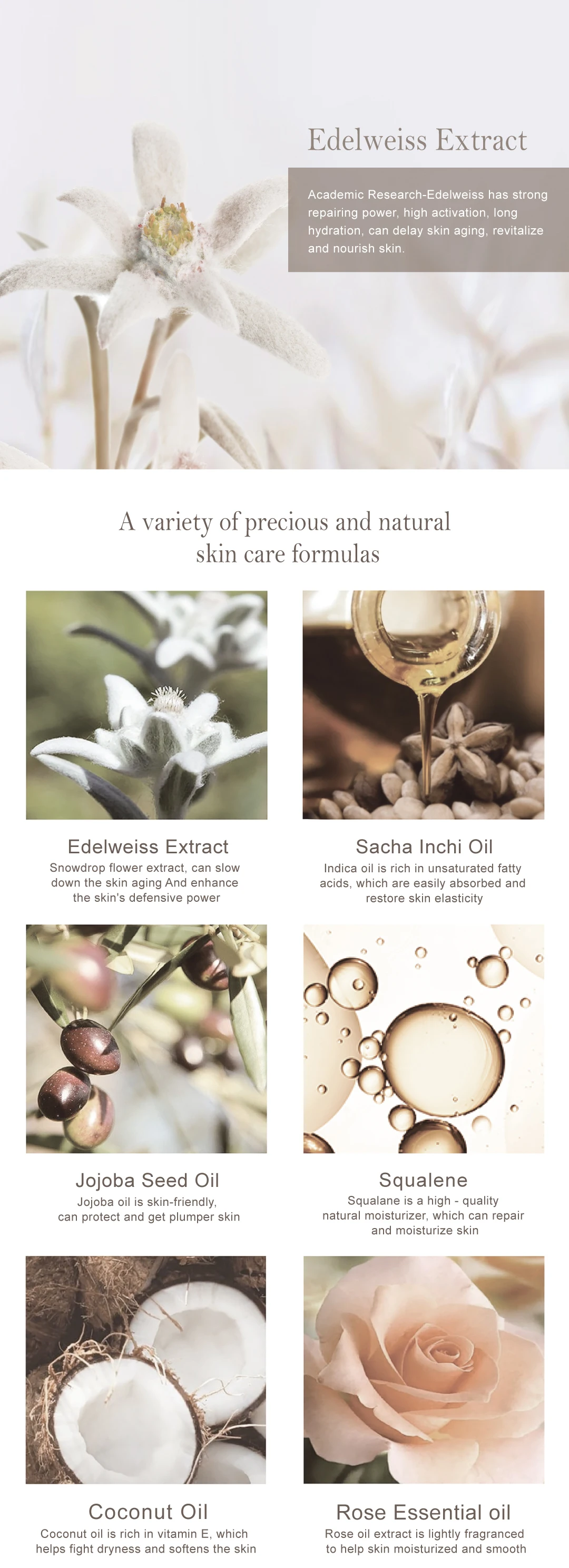 Academic Research-Edelweiss has strong repairing power, high activation, long hydration, can delay skin aging, revitalize and nourish skin.