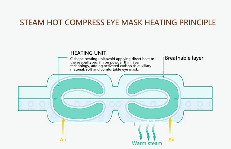 1.The moderate amount of heat at a temperature of approximately 46°C steadily and deeply warm the eyes and ease tension in surrounding muscles.