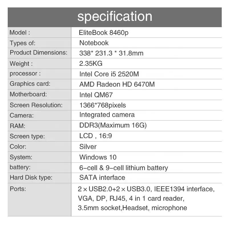 New High Performance I7 Refurbished Used Laptop I5-3/4g Ram/320g Hdd /14''Second Hand Computer For Hp 8470