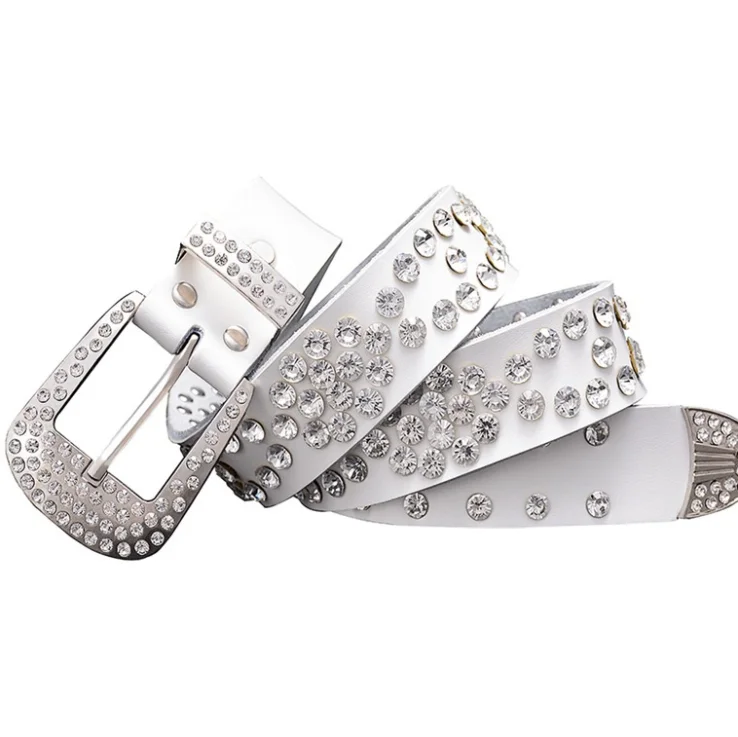 New luxury crystal women leather belt men unisex diamond studded belt bb simon belts