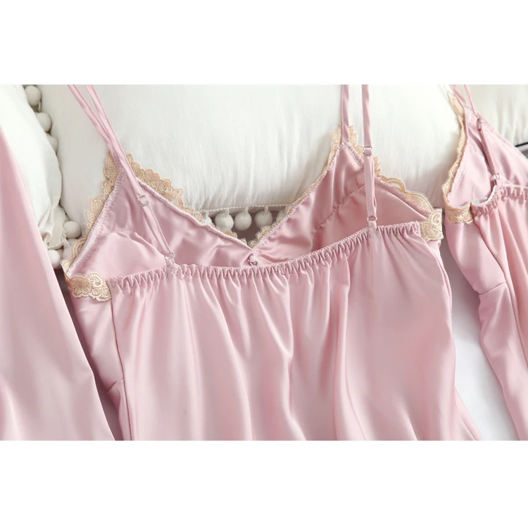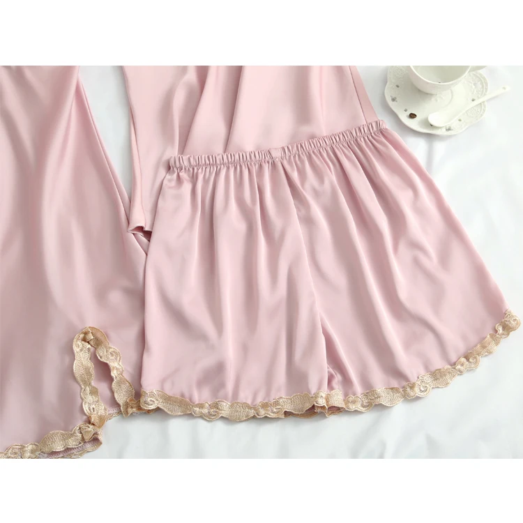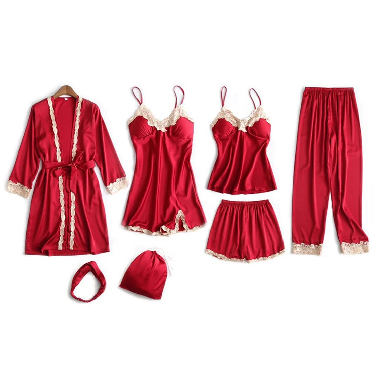 New Pijama Women Silk Pajamas Se Lounge Pyjama With Chest Pads 7 Pieces Sets Satin Sleepwear Silk Embroidery Night Suit Wear