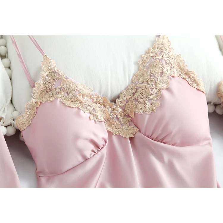 Sleepwear Silk Embroidery Sleep Women Pajamas