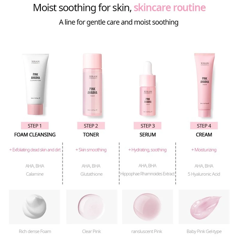 OEM All-in-one Skin Care Set with AHA BHA PHA Cleansers, Skin Toner, Serum, and Cream Claming Anti Acne Tea Tree Skin Care