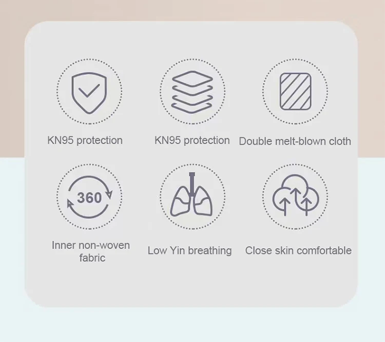 Strict quality control according to ISO 9001 KN95 mask according to China standard GB2626-2006 with Competitive price.At least 95% filtration efficiency for certain non-oil based particles.
