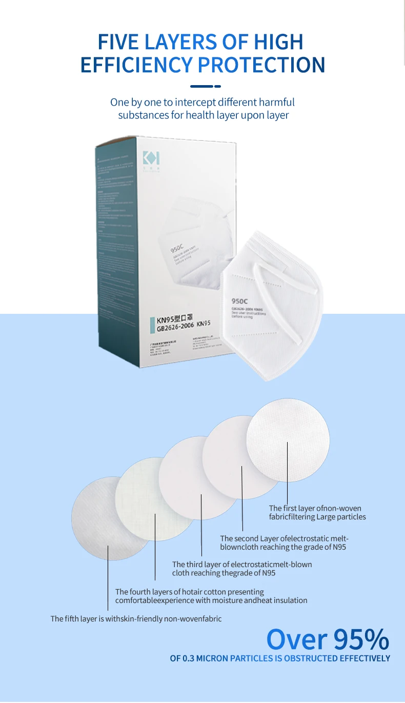 Perfect Quality Disposable KN95 Food Industry Face Mask KN95 Medical 5 Layer Mask
