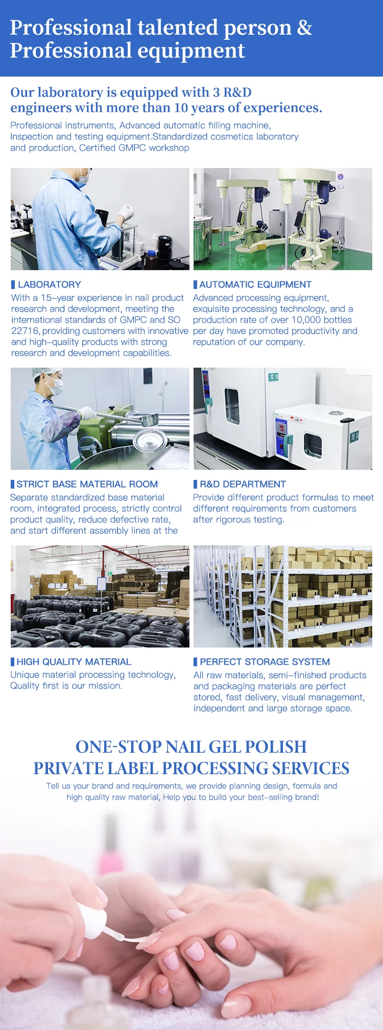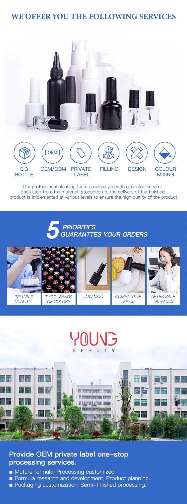 We offer not only the gel polish, but also the production of goods and exports on behalf of clients.