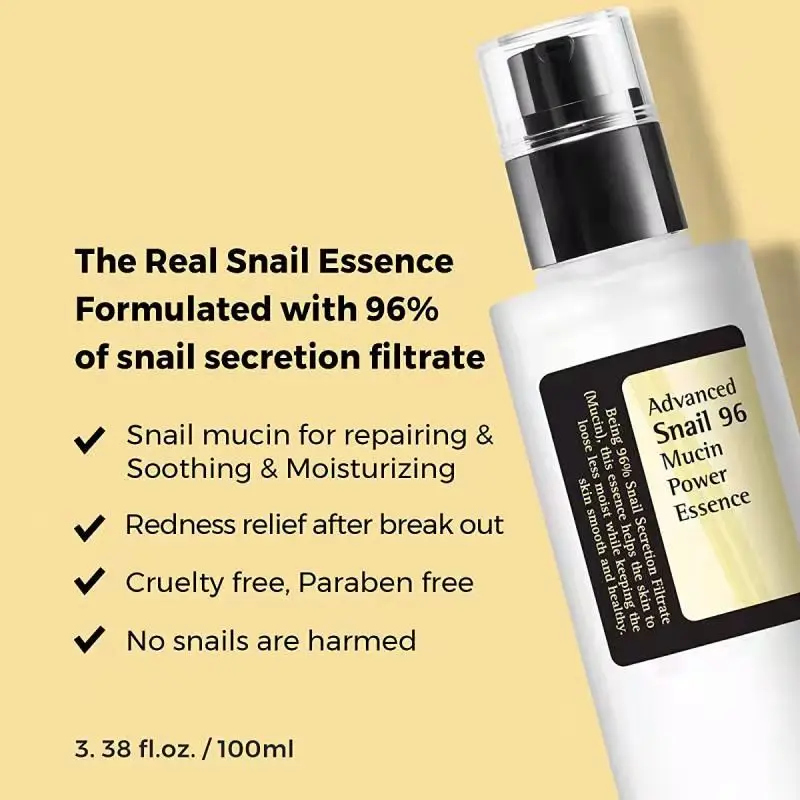 • The Real Snail Essence: Formulated with Snail Secretion Filtrate, this essence repairs the skin from dryness and aging by protecting the skin from moisture. This essence improves skin vitality by reducing dullness and soothing dehydrated skin.