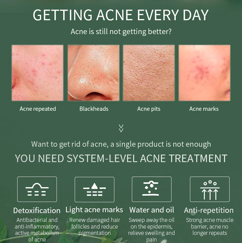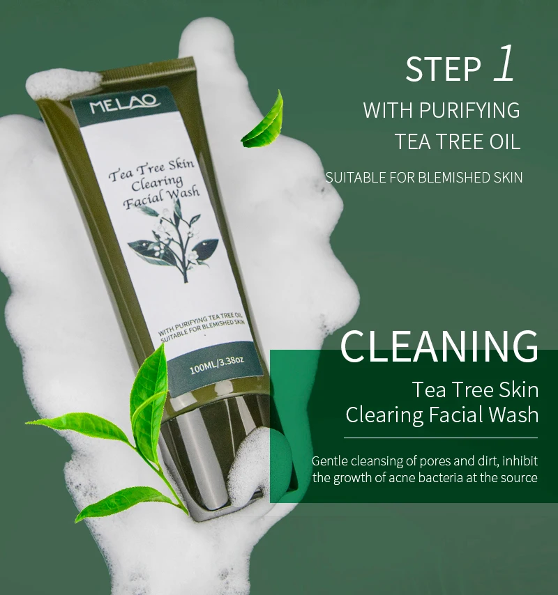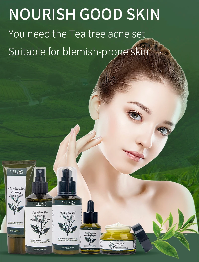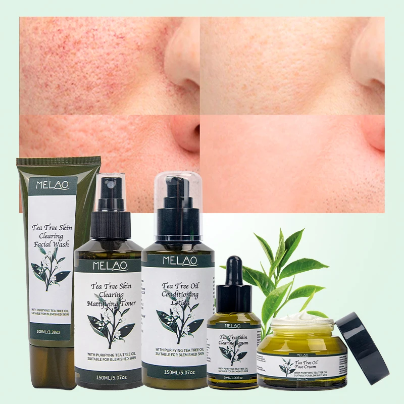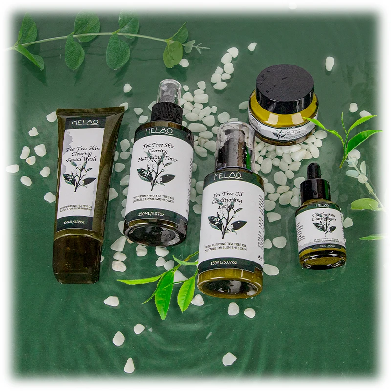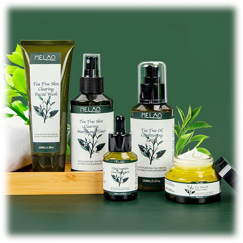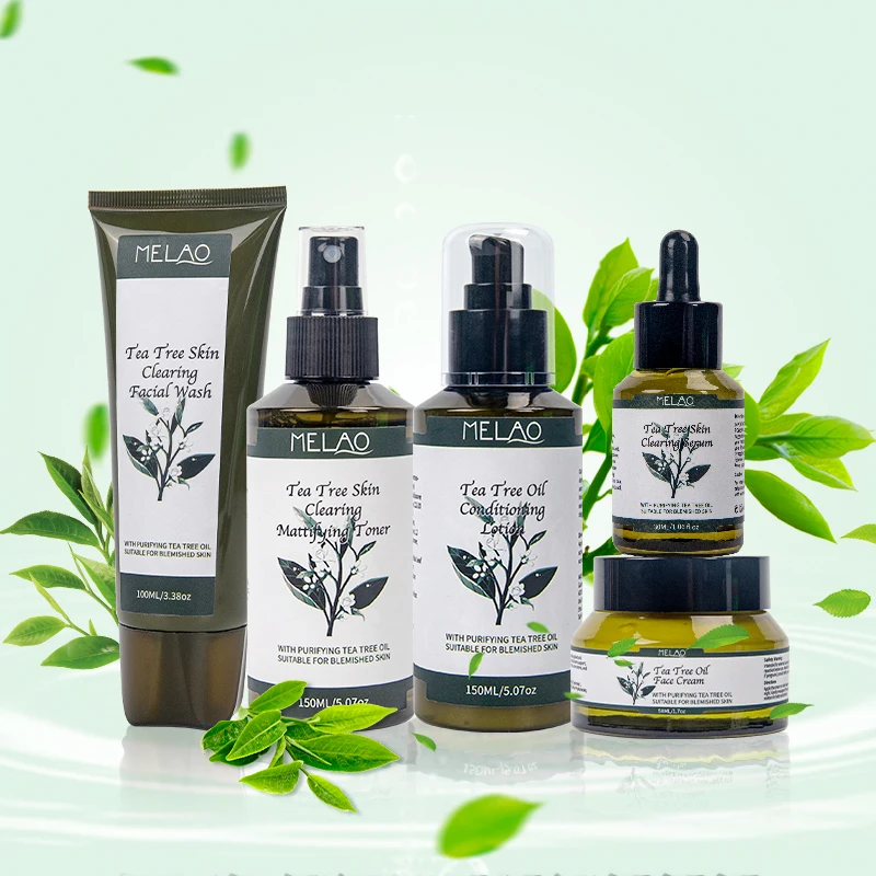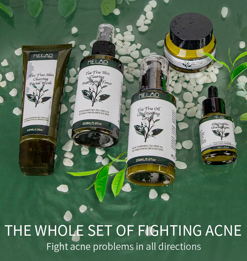 Private Label Skin Care Set Anti Acne Serum Cream Acne Treatment Face Wash Cleanser Tea Tree Essential Oil Set For Men Women