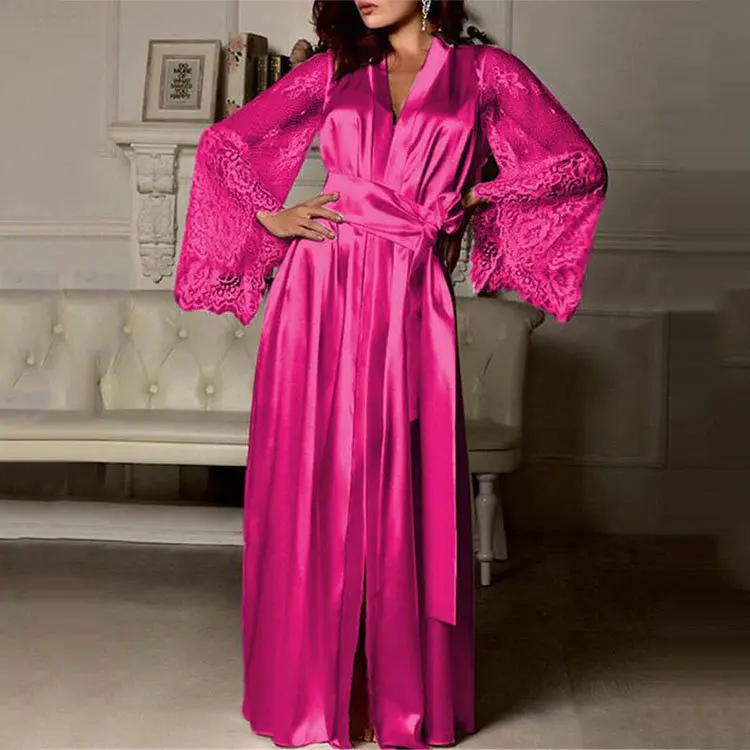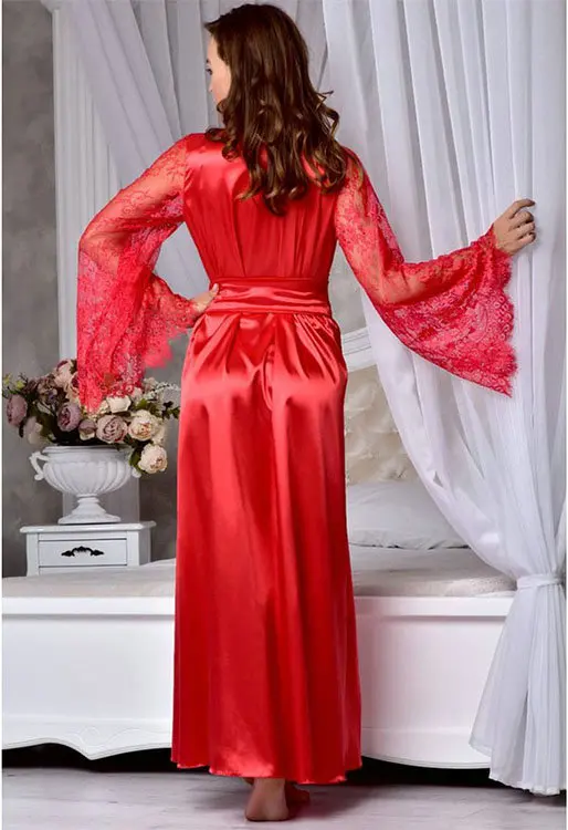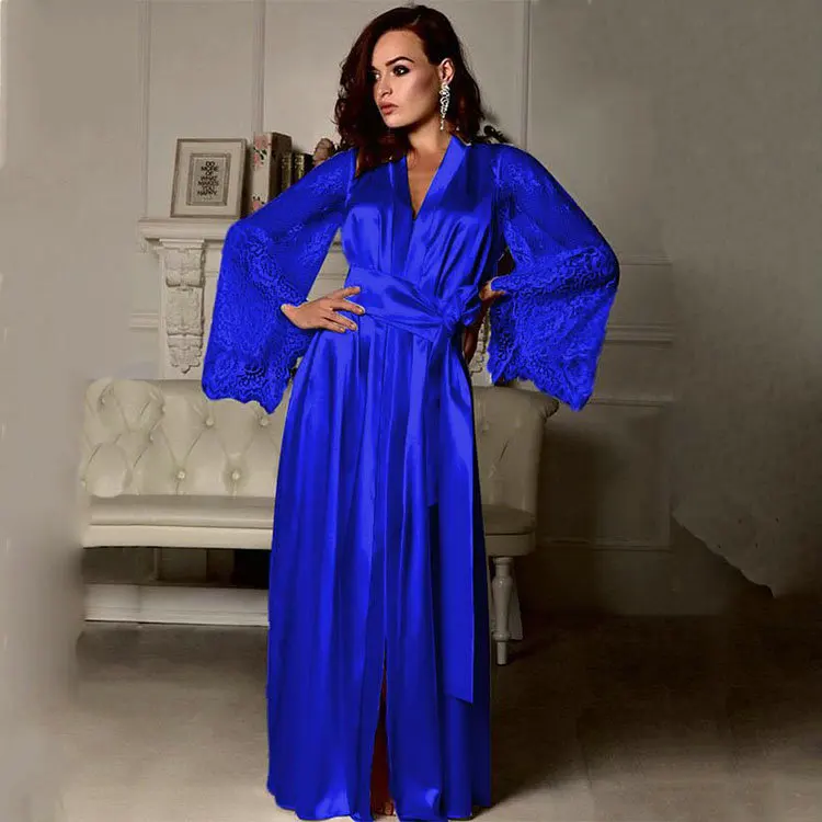 Qushine Long Elegant Lace Bridesmaid Robes Women Silk Satin Bridal Wedding Bride Kimono Dress