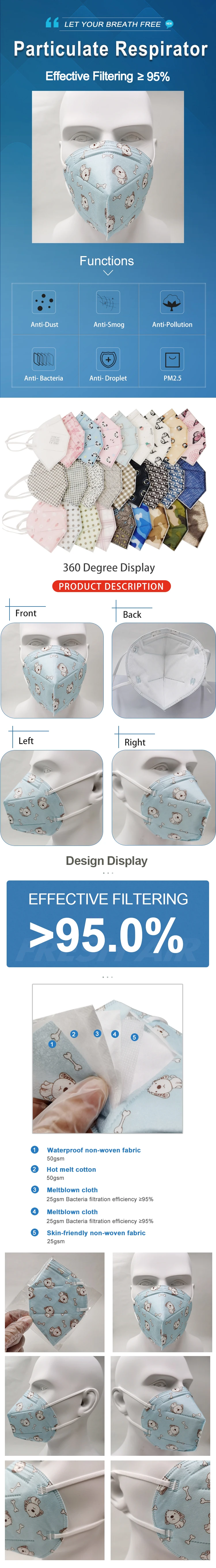 ShineYa Custom Fashion Colorful 5Ply Non Woven PM2.5 Dustproof Ear Straps Disposable KN95 Masque Respirators Masks