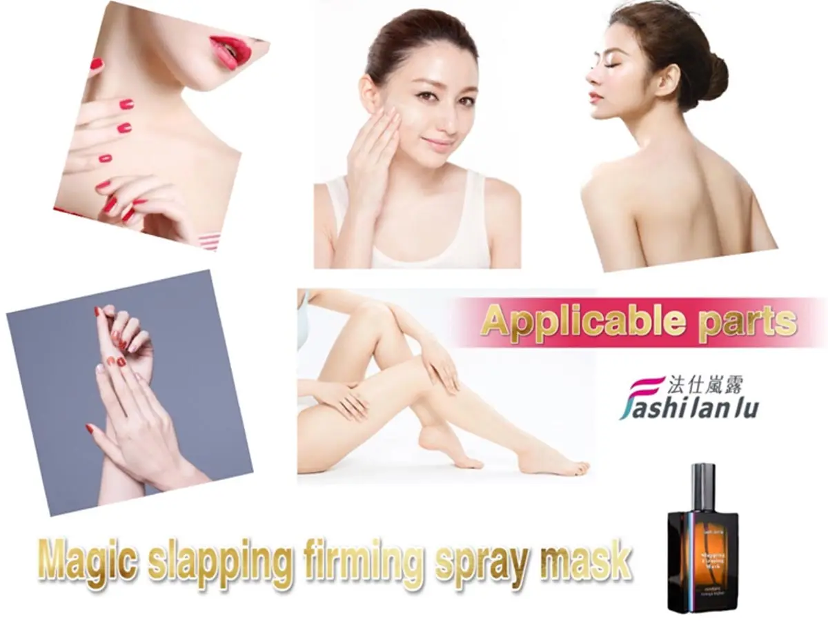 1. Spray the "Fashilan Lu -Slapping Firming Mask"on the face, wait for 3 minutes for the mask spray to dry, and the face will immediately feel firm and lifted. It is the world's first instant face firming Lifting feeling mask.