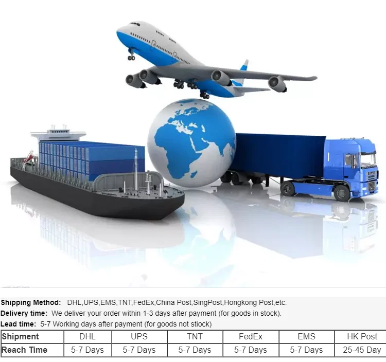 A6: Regarding the small quantiy order, we can send them by Fedex, DHL, TNT express which we have 35% discount and the large quantity goods are shipped by ocean shipping according to client's demands.