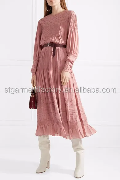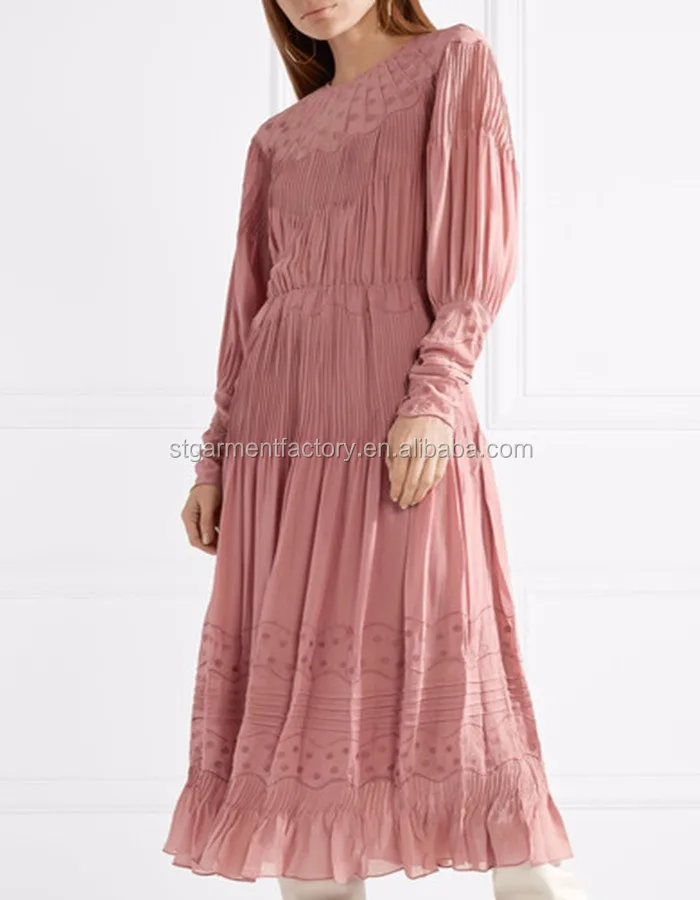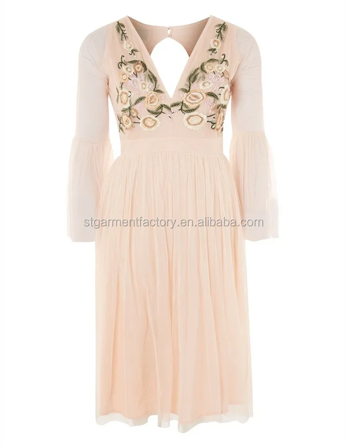 STb-0282 Spring Autumn Ruffles Embroidered Girls Dress.