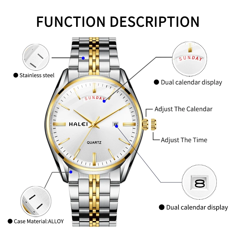 Q:What is your MOQ? And What about the production day? A: 1)HALEI brand watch in stock: MOQ:1-100pcs/order,1-7 days after receive payment; 2)OEM:MOQ:500pcs/item,15 days; 3)ODM&OBM:1000pcs/item, 15-30 days.