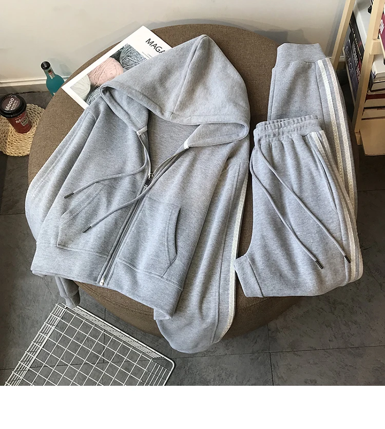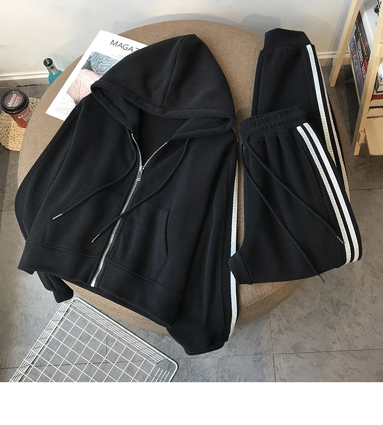 2020 autumn new short zipper sweater women's suit Korean loose sports casual harem pants gym hoodies for women two-piece suit