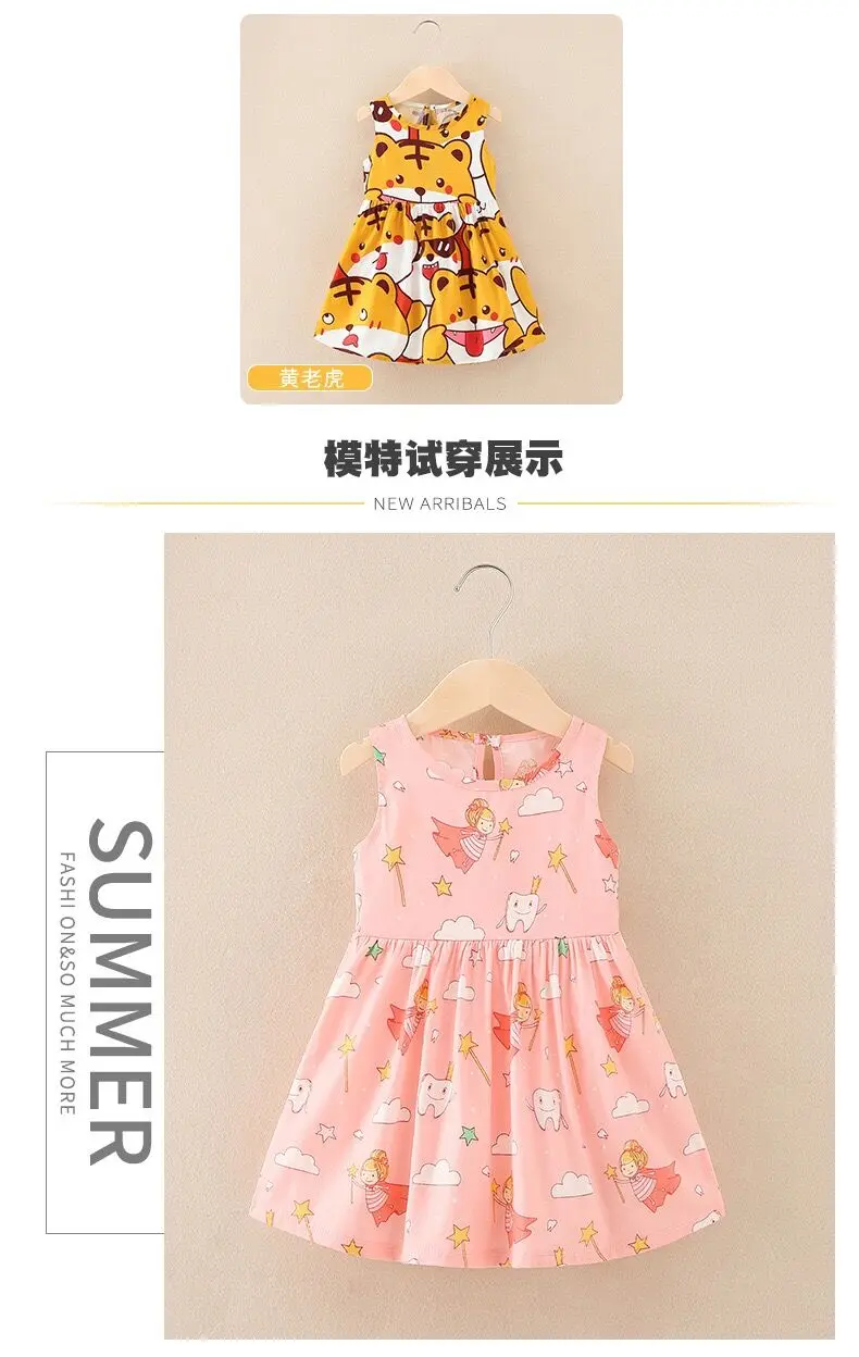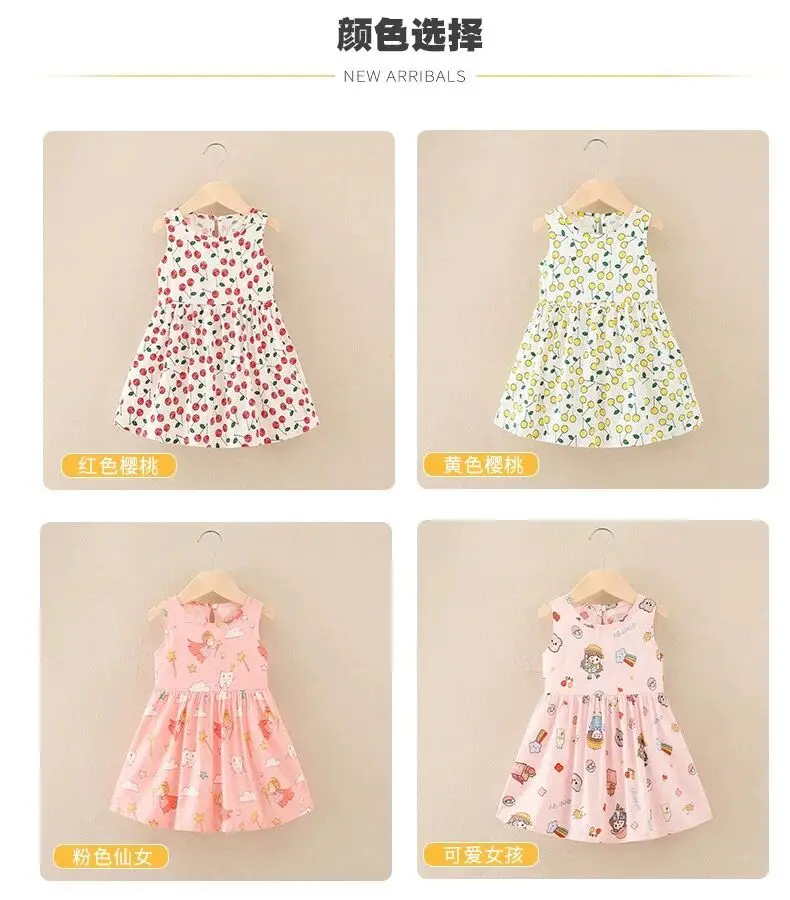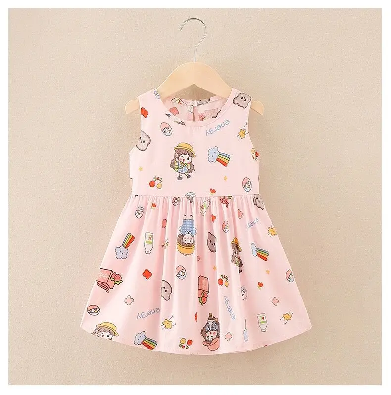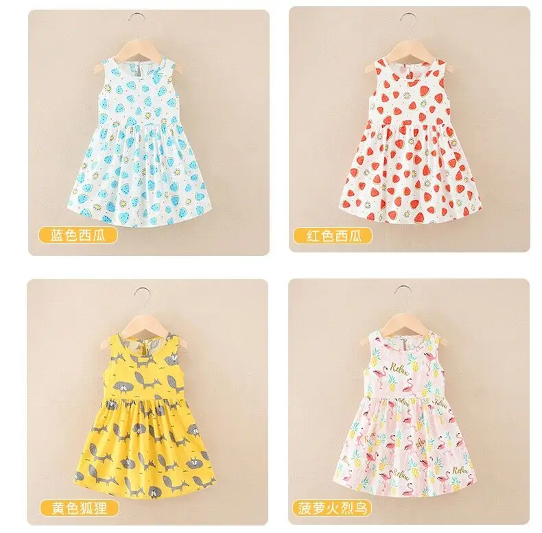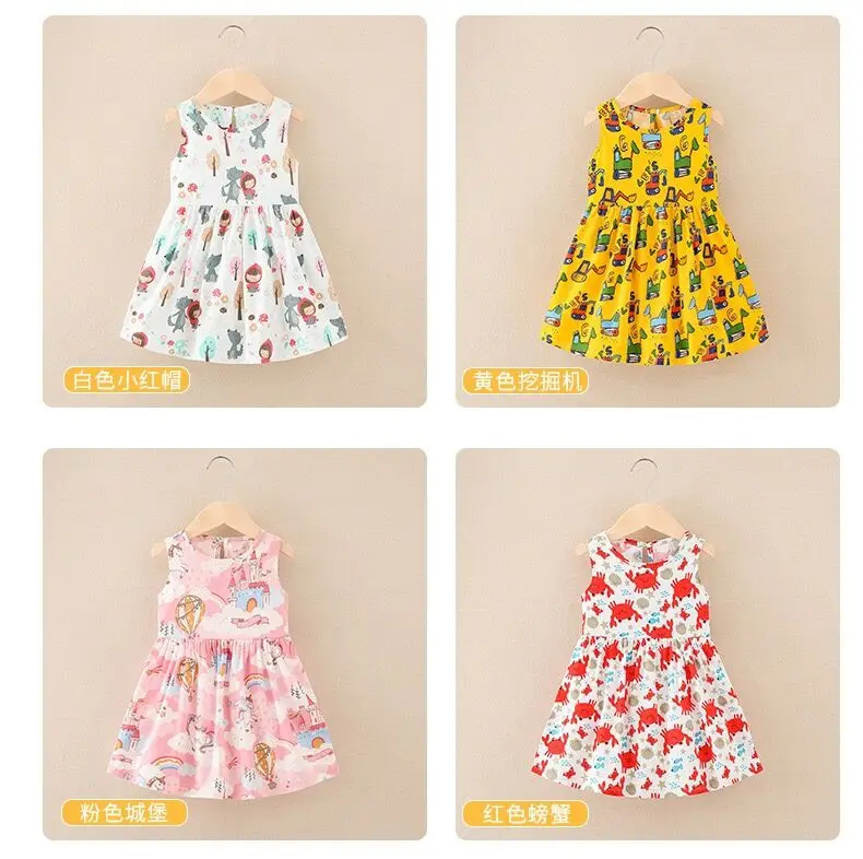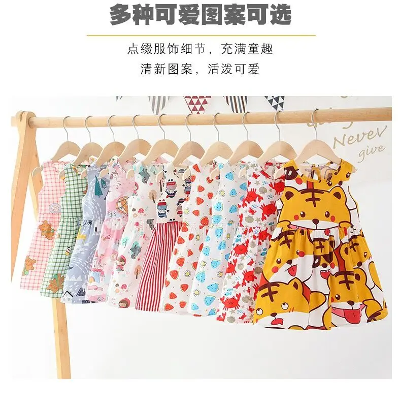 Summer Newborn Baby Clothes Infant Girl Clothes Korean Cute Print Sleeveless Kids Cotton Beach Dress Princess Baby Girl Dresses