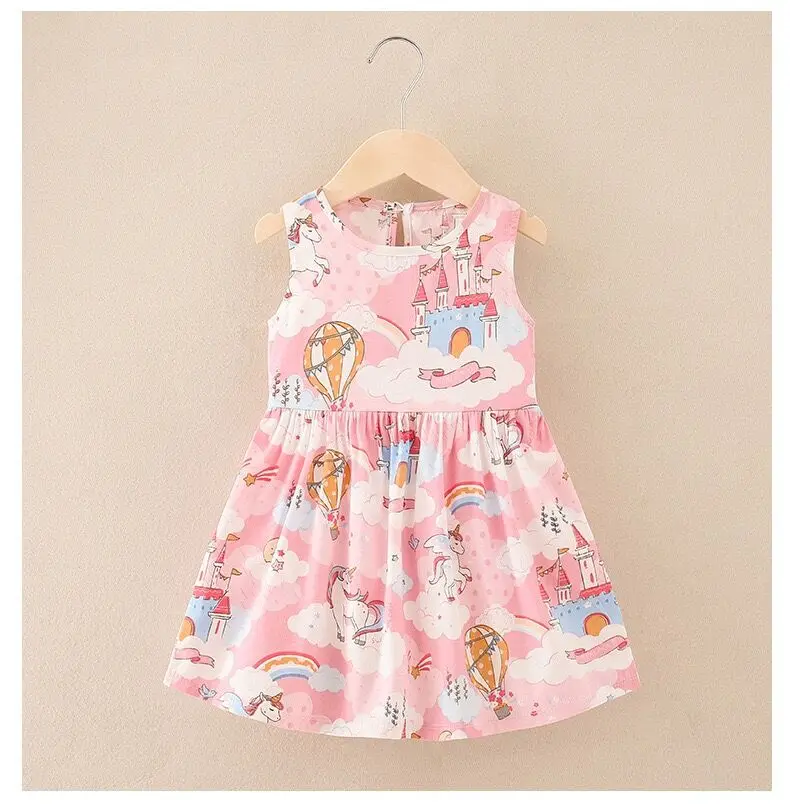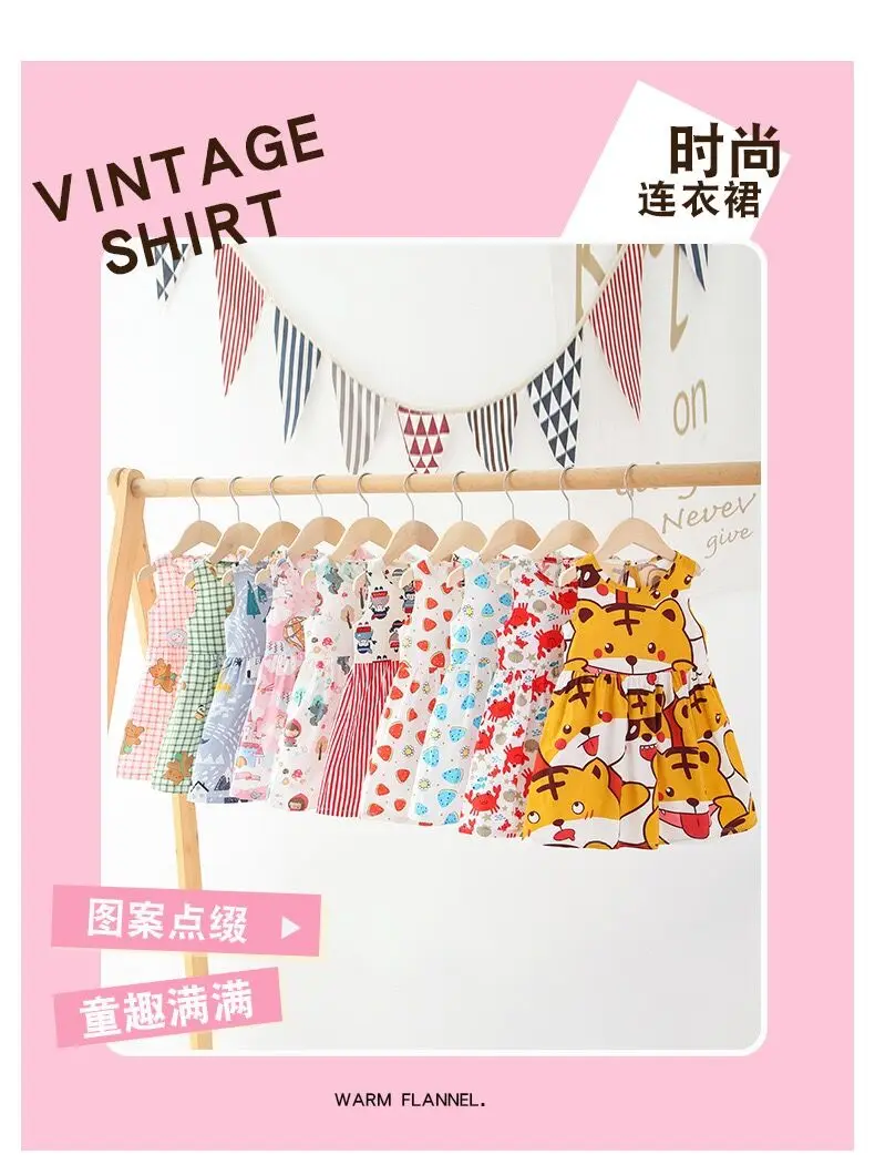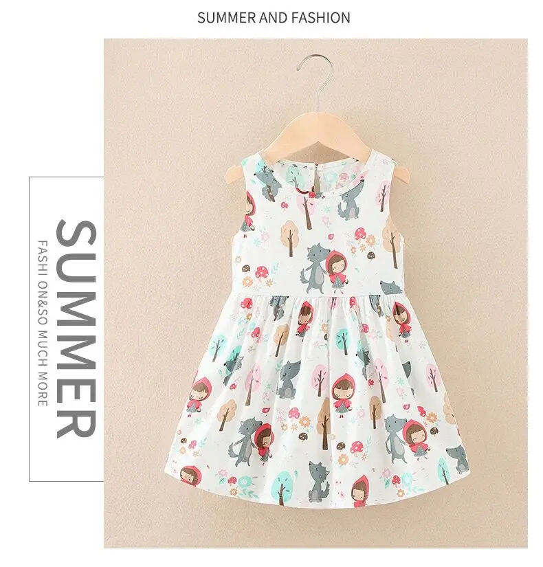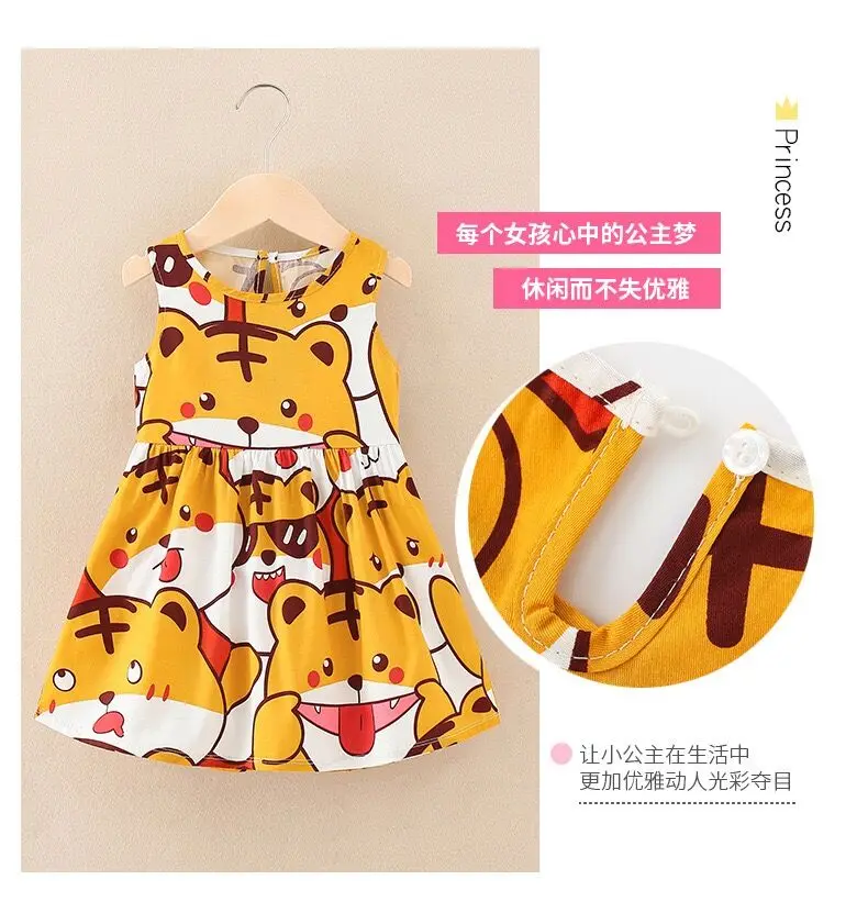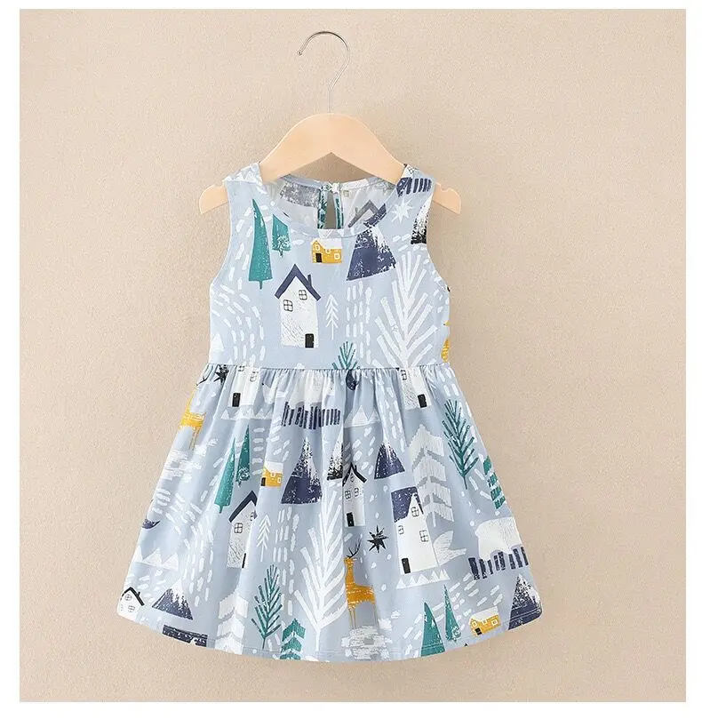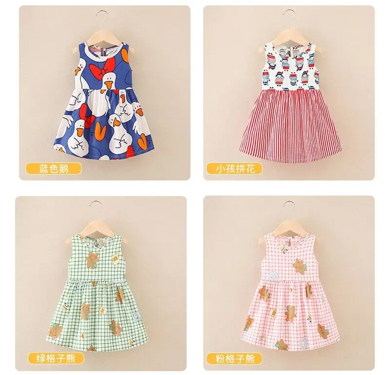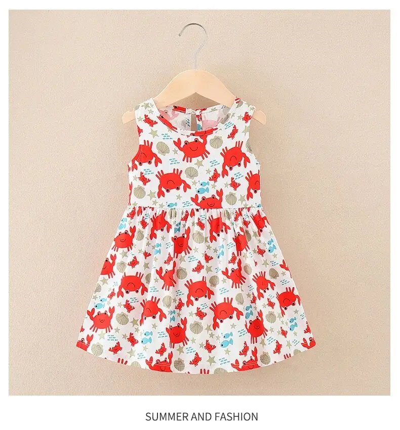 Summer Newborn Baby Clothes Infant Girl Clothes Korean Cute Print Sleeveless Kids Cotton Beach Dress Princess Baby Girl Dresses