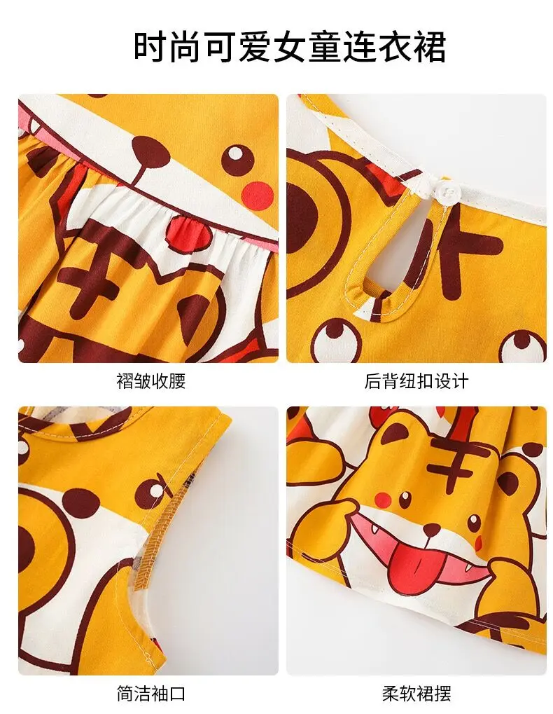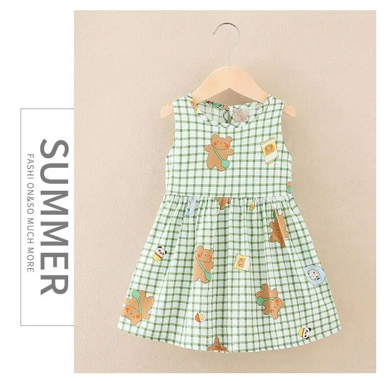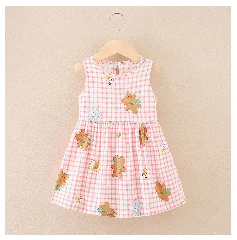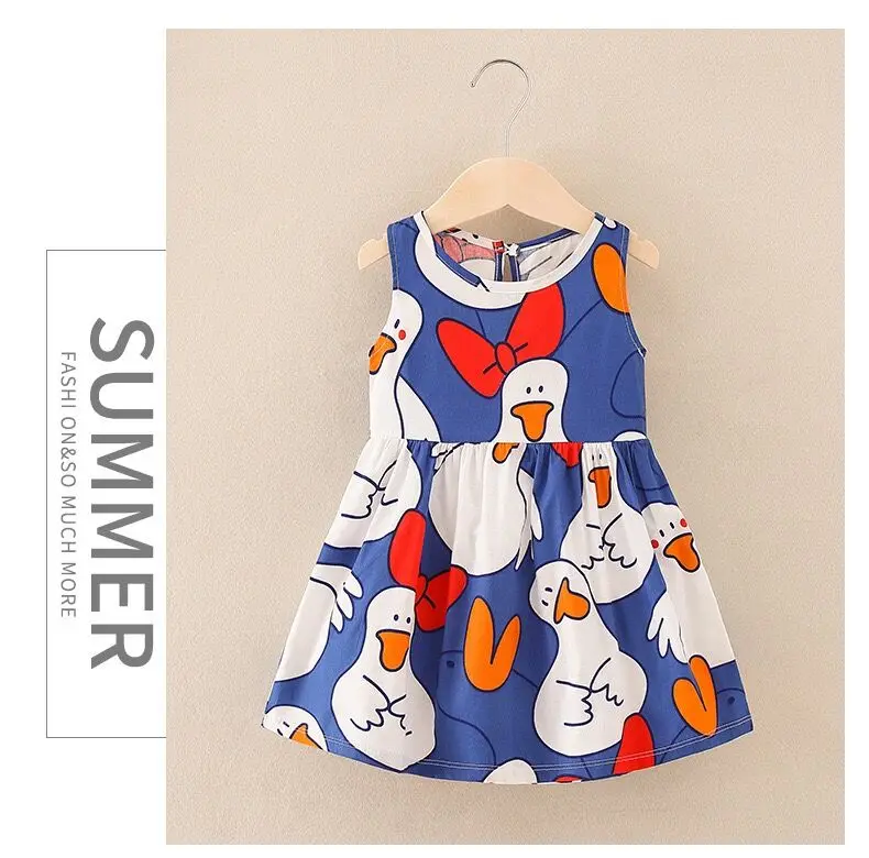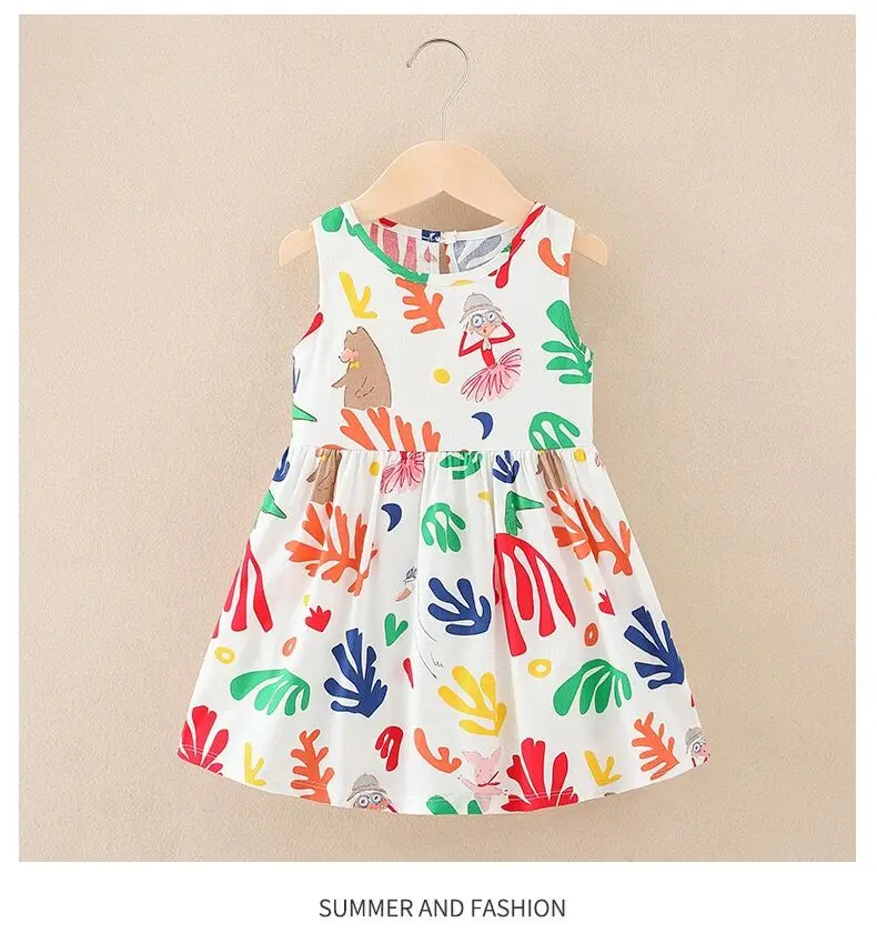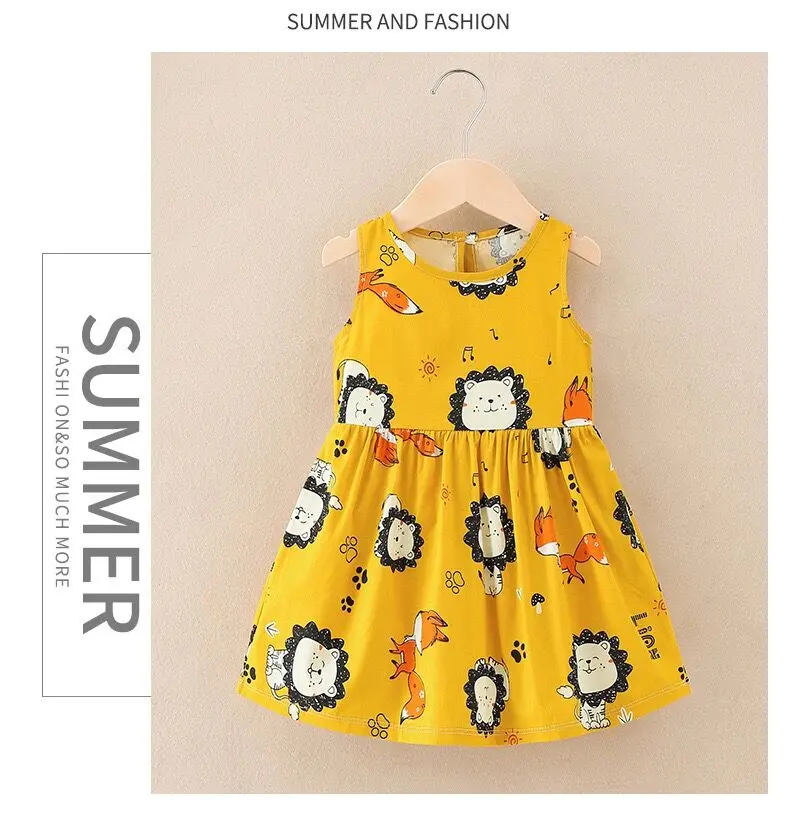 Summer Newborn Baby Clothes Infant Girl Clothes Korean Cute Print Sleeveless Kids Cotton Beach Dress Princess Baby Girl Dresses