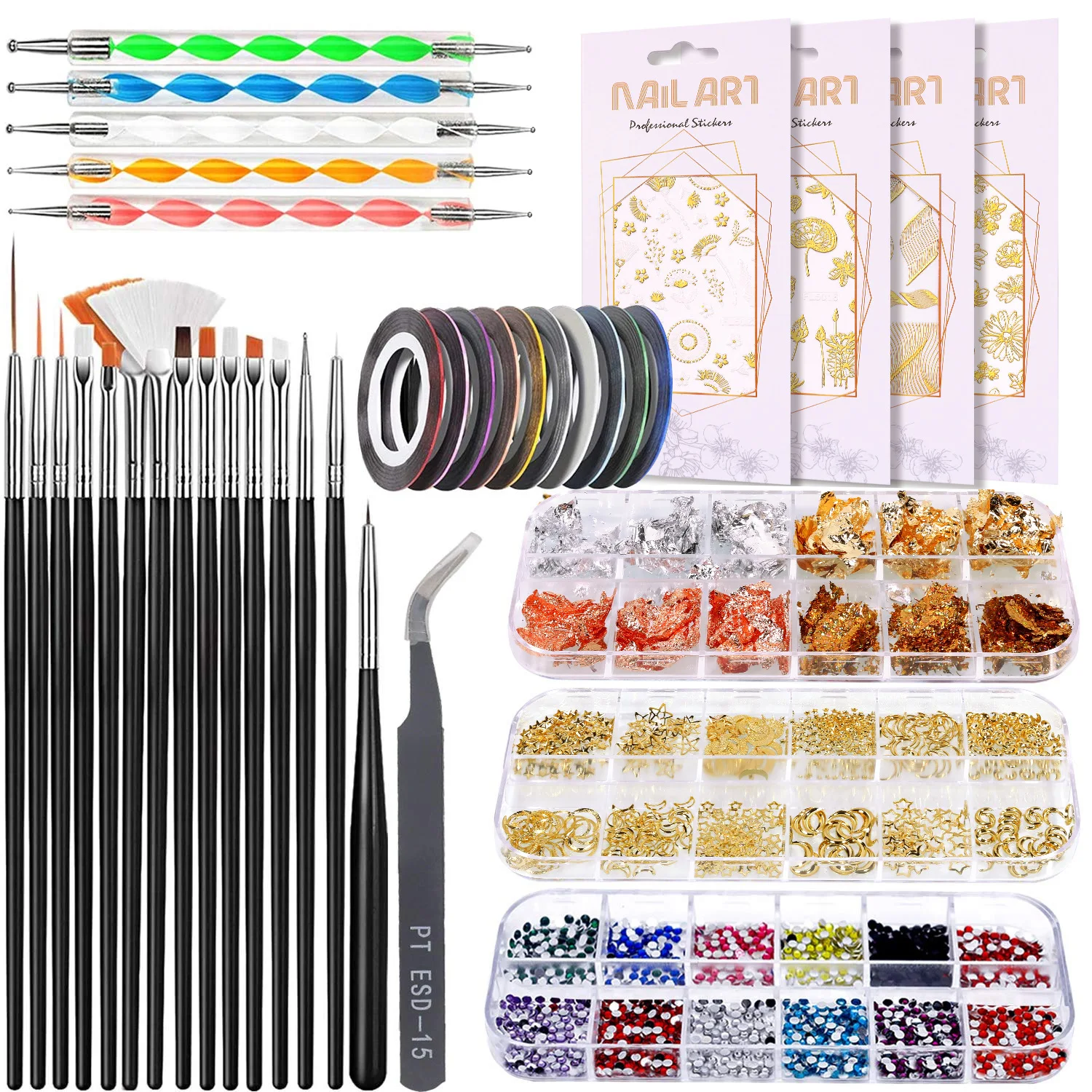 Multifunctional Gold Plastic Organic Rhinestone Professional Brushes Nail Art Manicure Pedicure Beauty Painting Brush