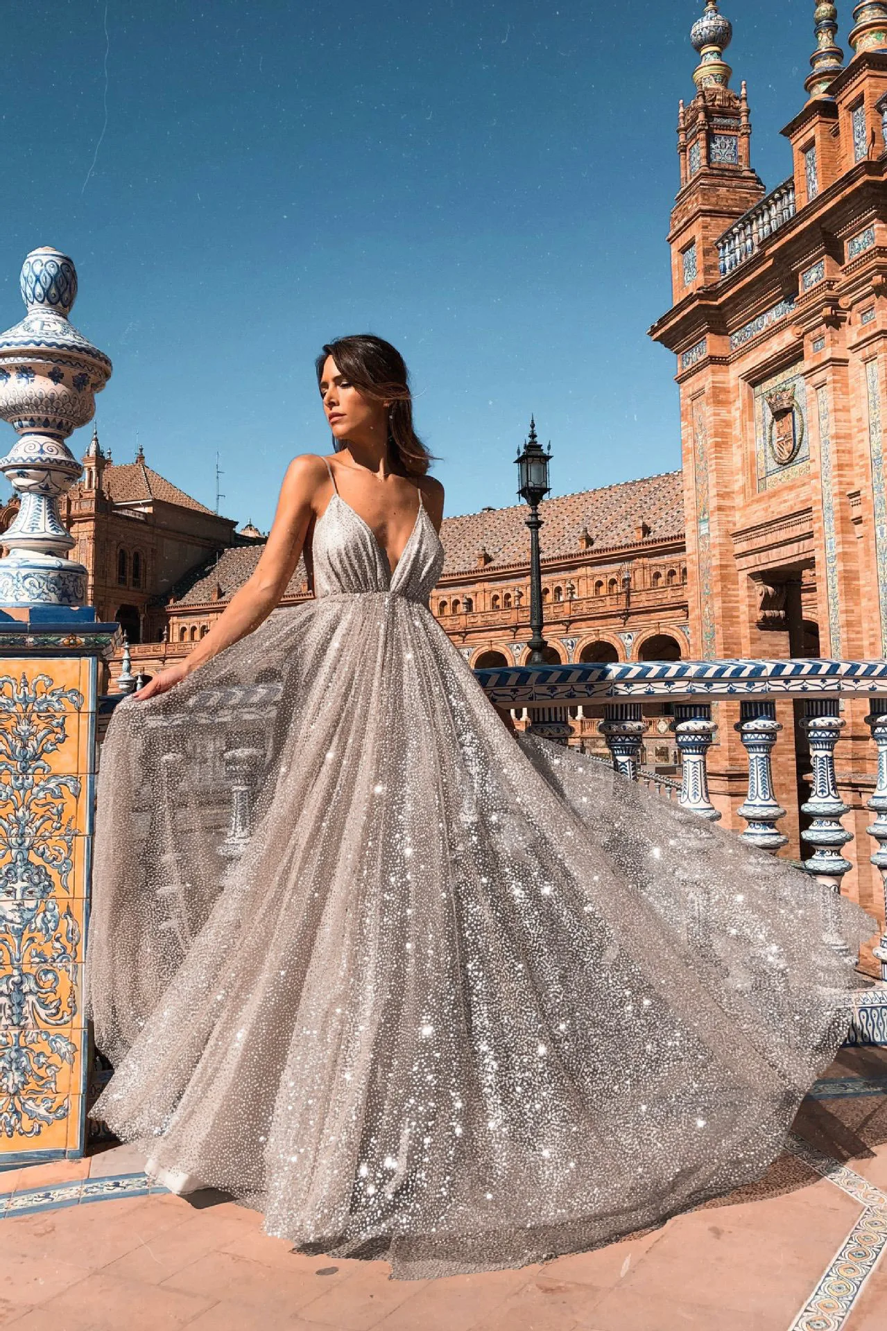 V Neck Backless Sexy Sling Women Prom Dress Sequin Design Long Bridesmaid Dress Bridal Wedding Dresses