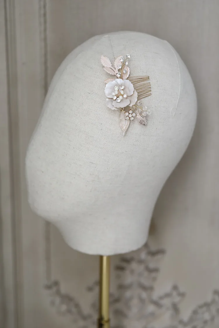 Simple freshwater pearl bride hair accessories rhinestone headpiece gold wedding metal hair combs
