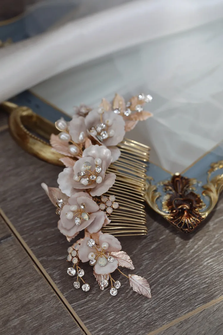 Vintage Bridesmaids Women Jewelry Alloy Flower Freshwater Pearls Bridal Hair Comb Wedding Hair Accessories