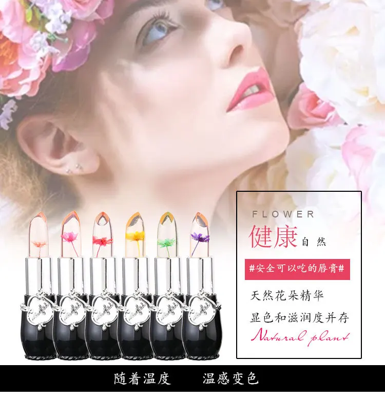 New Arrivals Waterproof Lip Stick Brand Cosmetics Long Lasting Temperature Color Change Jelly Lipstick with Flower