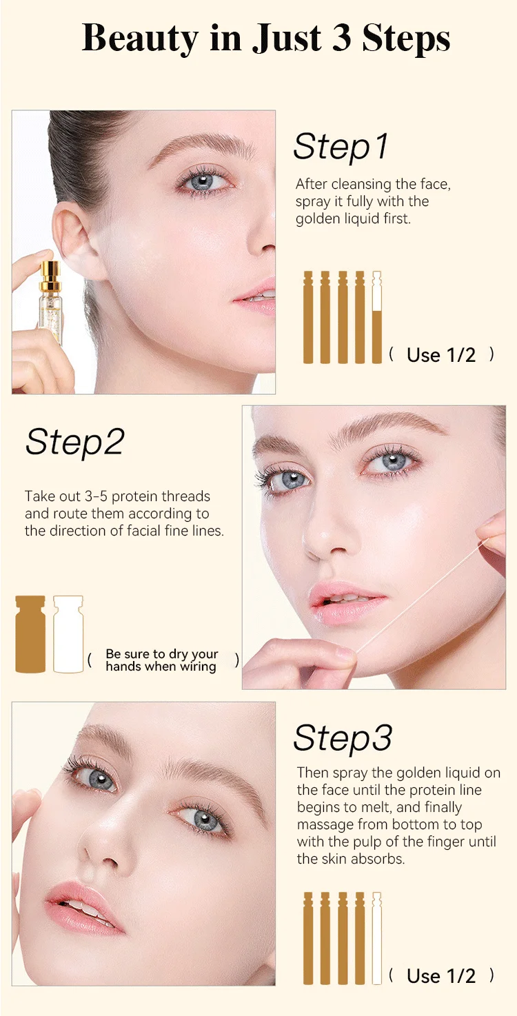 Wholesale Gold Protein Lines Anti-wrinkle Anti-aging No Needle Essence Line Golden Protein Set Face Serum