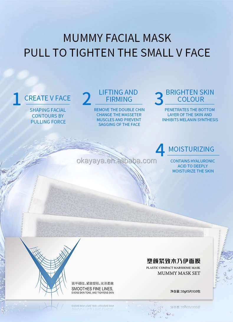 The material releases strong oxygen, creating a v-shaped face.Brightens skin tone, smooths fine lines, tightens skin and lifts facial muscles.Promote blood circulation and activate cells.