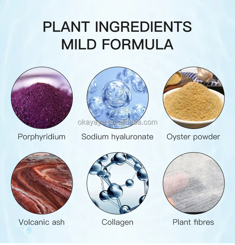 Volcanic ash, cyanobacteria extract, collagen, calcium carbonate, plant fiber, brightening and tightening essence, etc