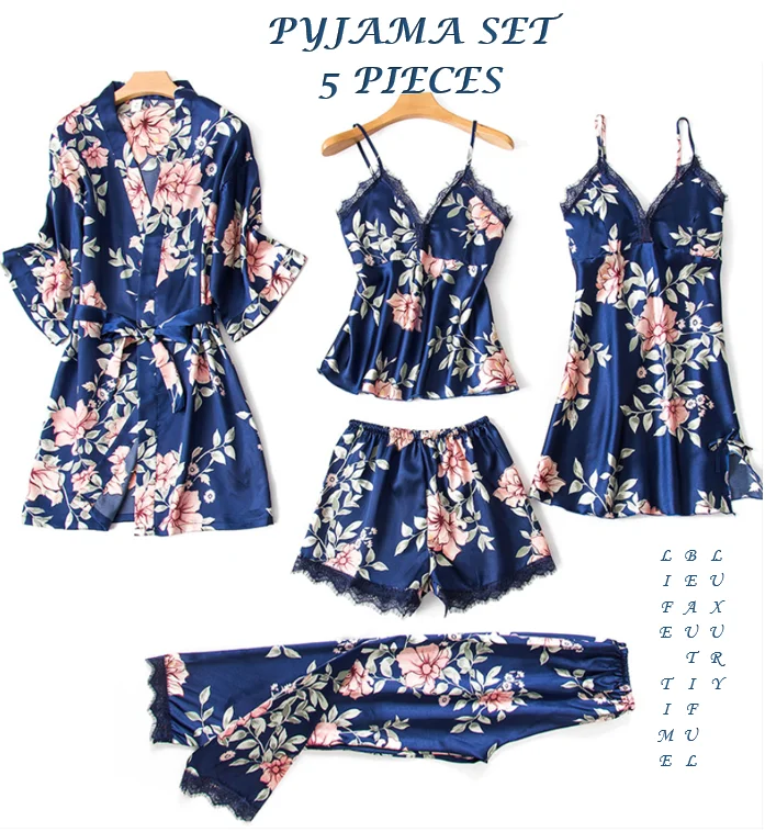 Women Pajamas Sleepwear Night Dress 5 Five Pieces Sleepwear Womens Sleep Set