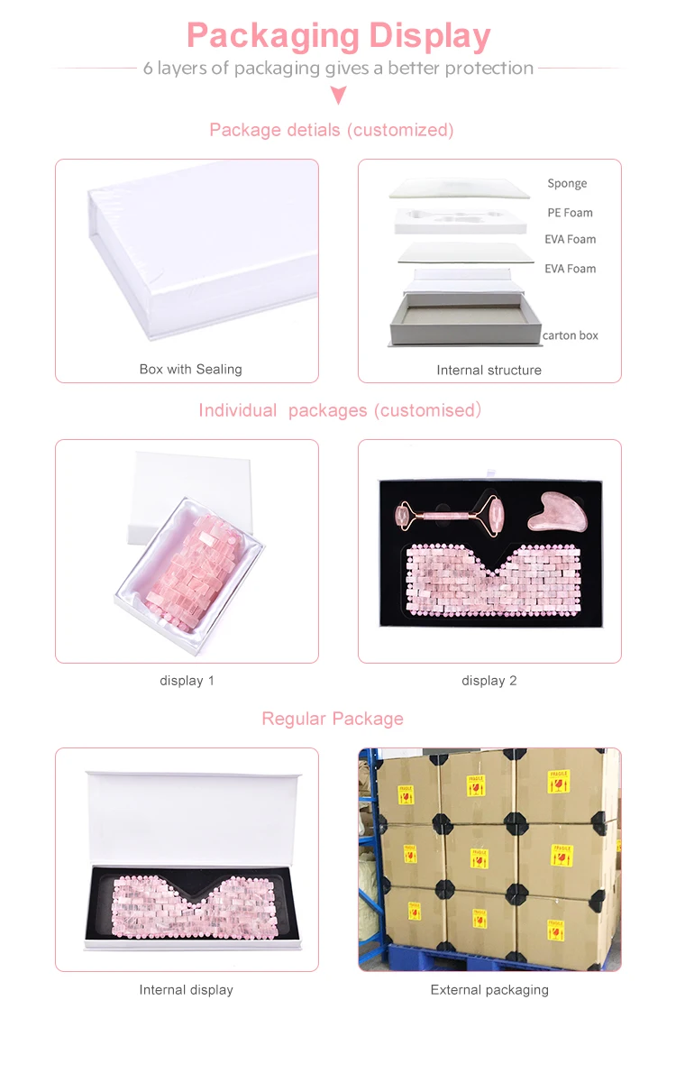 We manufacture and design beauty & personal care products, including jade face massage roller, rose quartz face mask, rose quartz bra, gua sha, yoni egg, etc.