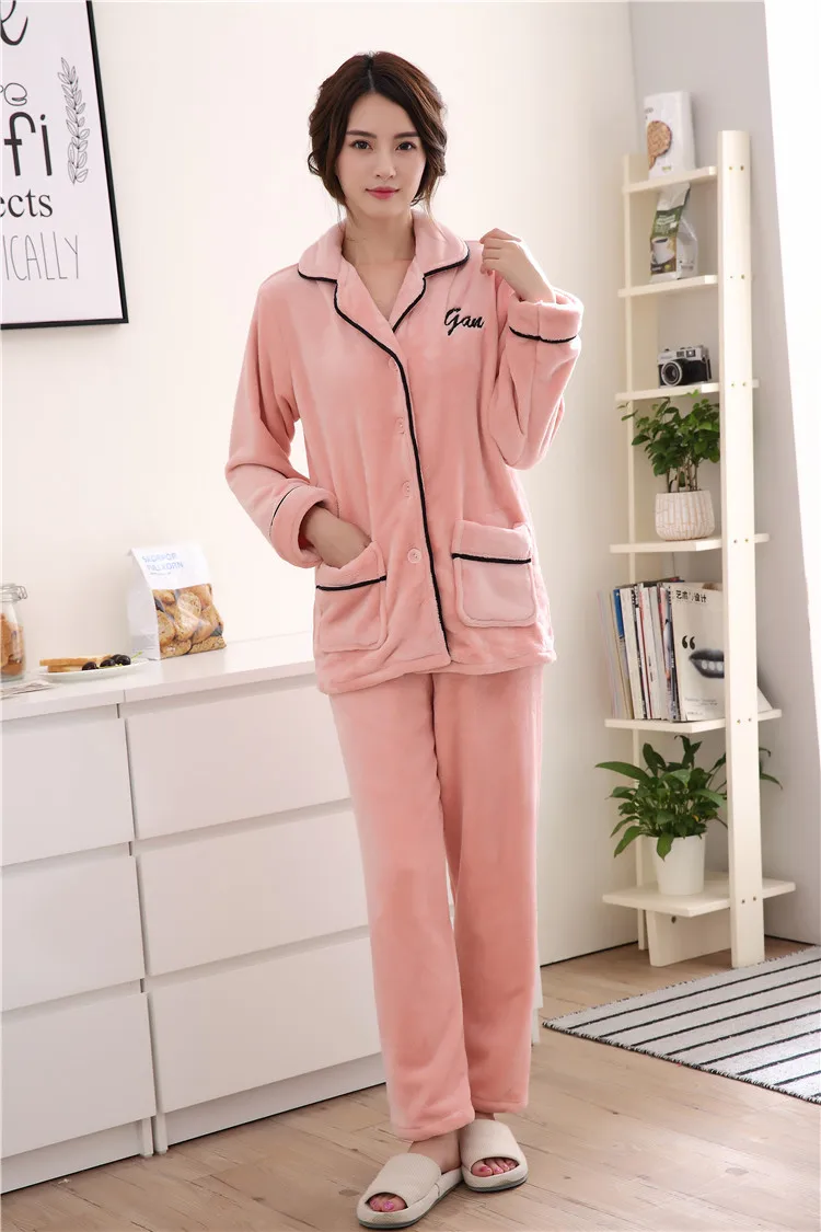Winter Sleep Plush Lounge Wear Man Piyama Lucu Baju Tidur Fleece Night Suit 2 Piece Nightwear Set Flannel Pajamas Nighty