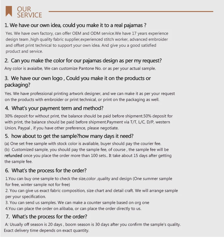 2. your picture or swatch, color, fabric,size &logo,7 days.
