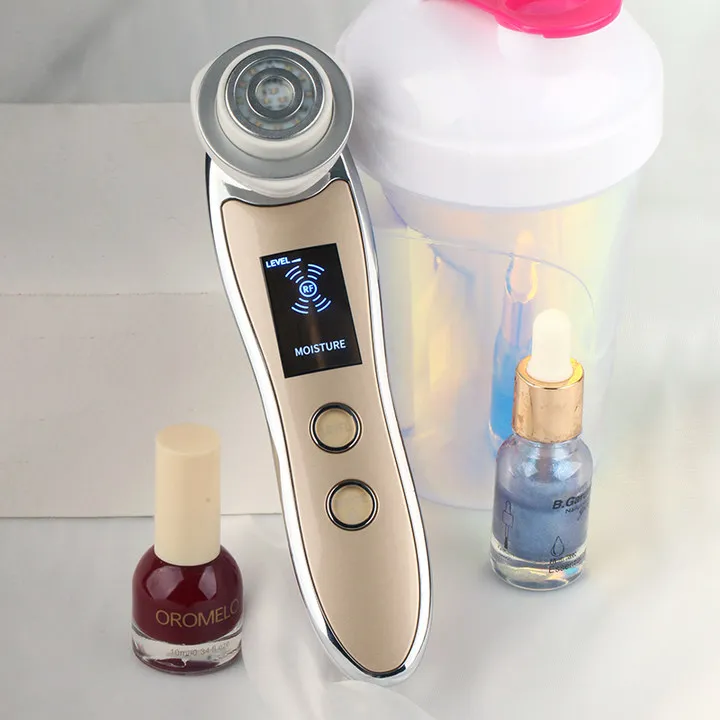 1.This product uses RF, vibration, LED small row light, icy, EMS, iontophoresis / export function to cleanse, relieve pressure, shrink pores, nourish skin.