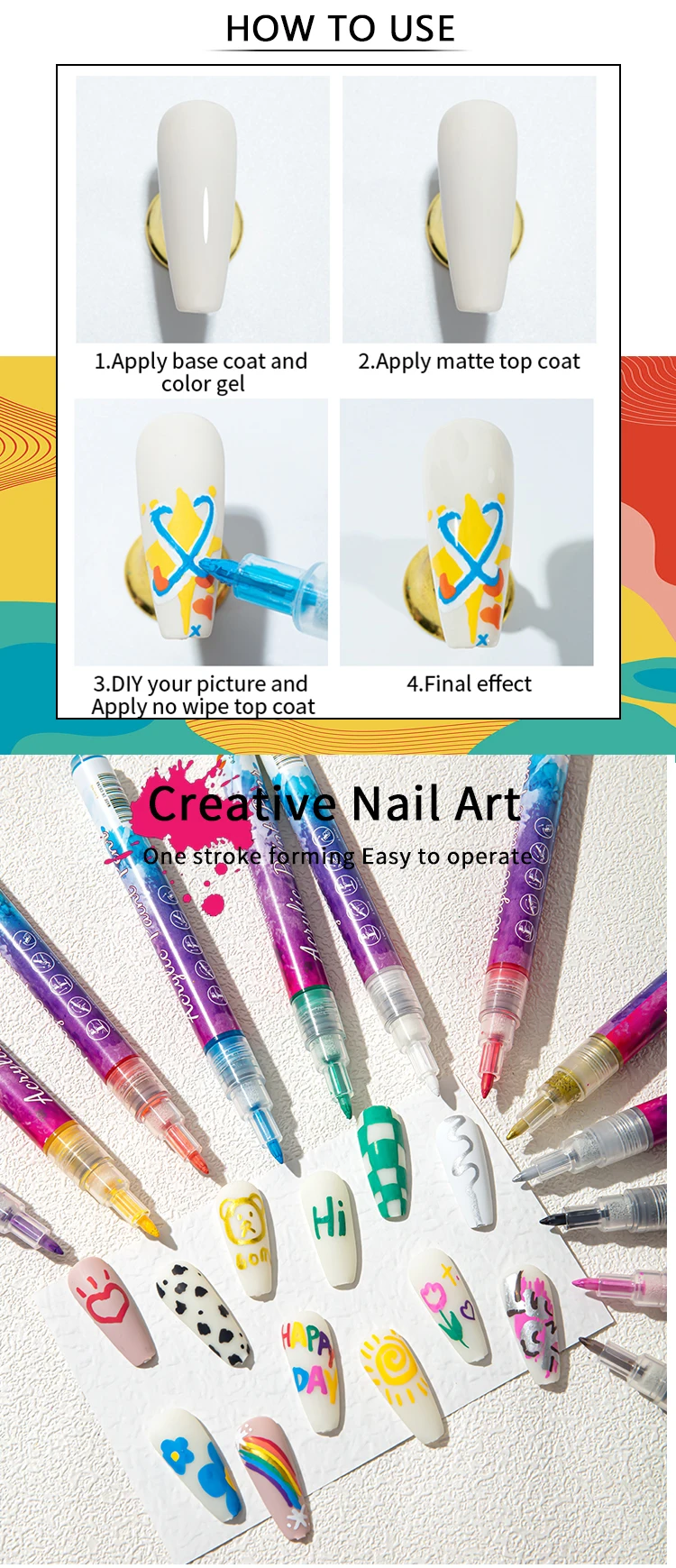 Waterproof Drawing Painting DIY Flower Fast Drying Nail Art Pen